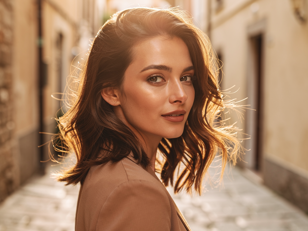 Onde leggere, piega naturale o effetto leggermente spettinato: i capelli medi si prestano a uno styling spontaneo.